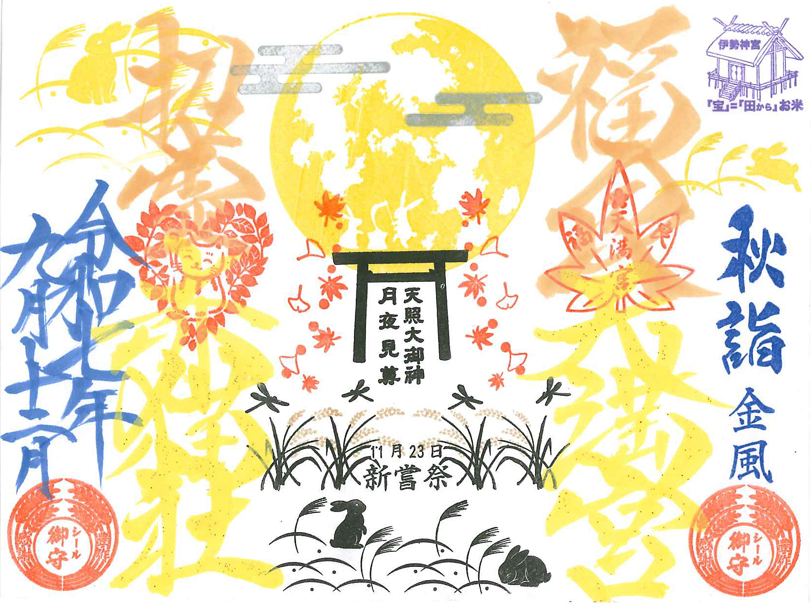 当社では、今年は9月も暑い日が続きましたが、中秋の名月代表に名月や満月を心穏やかに気持ちよく過ごしてもらうたいと、月見の期間を延長し、令和7年度は9月23日【秋分の日】から、12月14日までを「秋詣」とします。「秋詣」の季節御朱印を開始致します。福良大神様の御利益を戴きにお参りにお越し下さい。